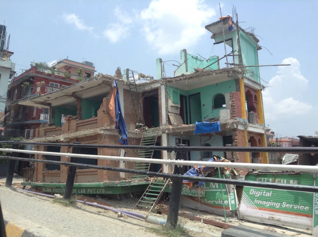 Early the next morning I loaded into a taxi with Sean, Benjamin, and Shauntae for the hour long ride through Kathmandu and out to a rural corner of Lalitpur region. It wasnt until that drive that I started to see the real devastation of the earthquake: buildings partially and totally collapsed, some leaning against each other or propped up with supports, and make-shift tents in the highway median, the airfield, and every open space. People were too afraid to sleep in their homes in case another quake hit at night.