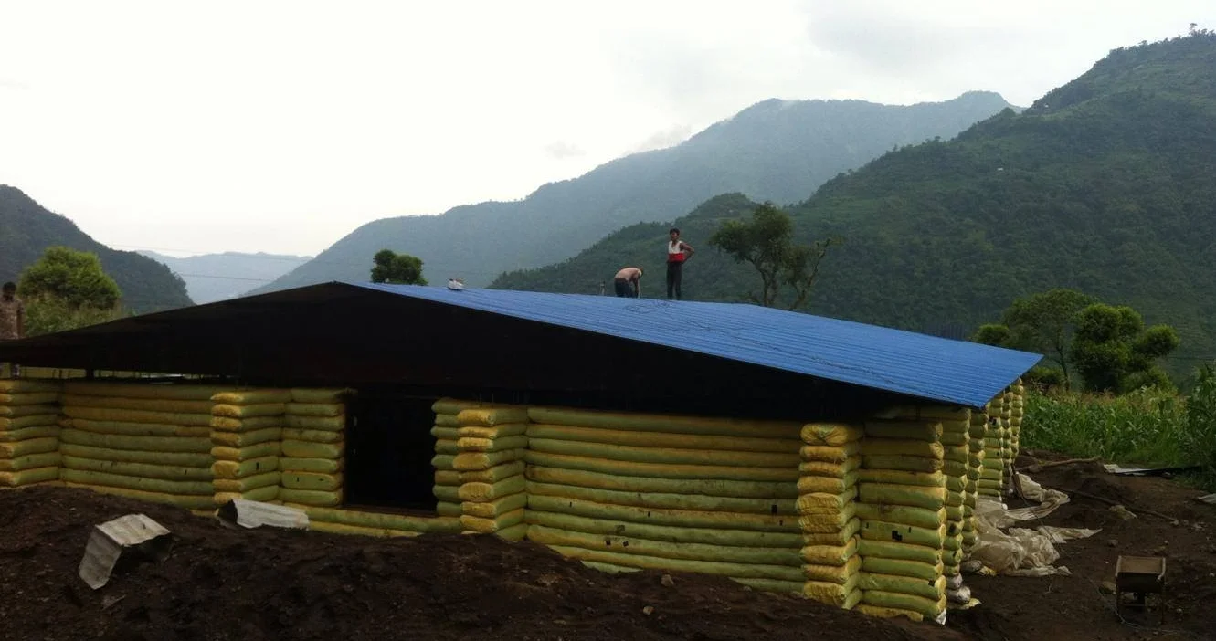 We are so excited to share with you that the community center in Malta, Nepal is under construction! After only one month the foundation is poured, the earthbag walls are compete, and the roof is up!
